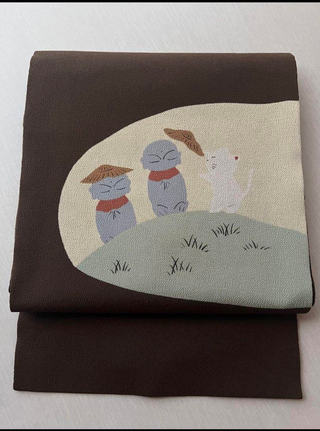 童謡の笠地蔵にねこちゃんが描かれているとても可愛い帯です。