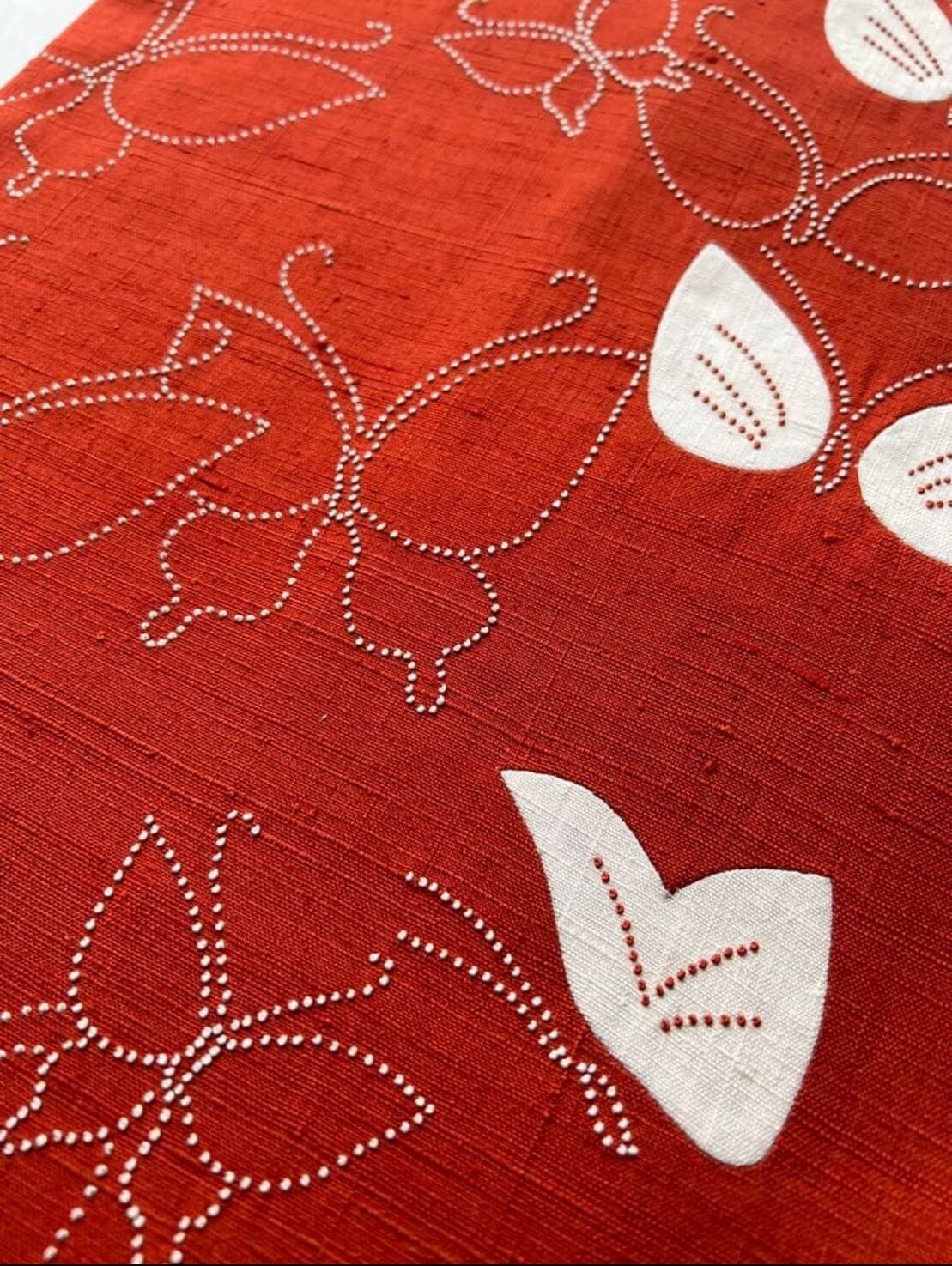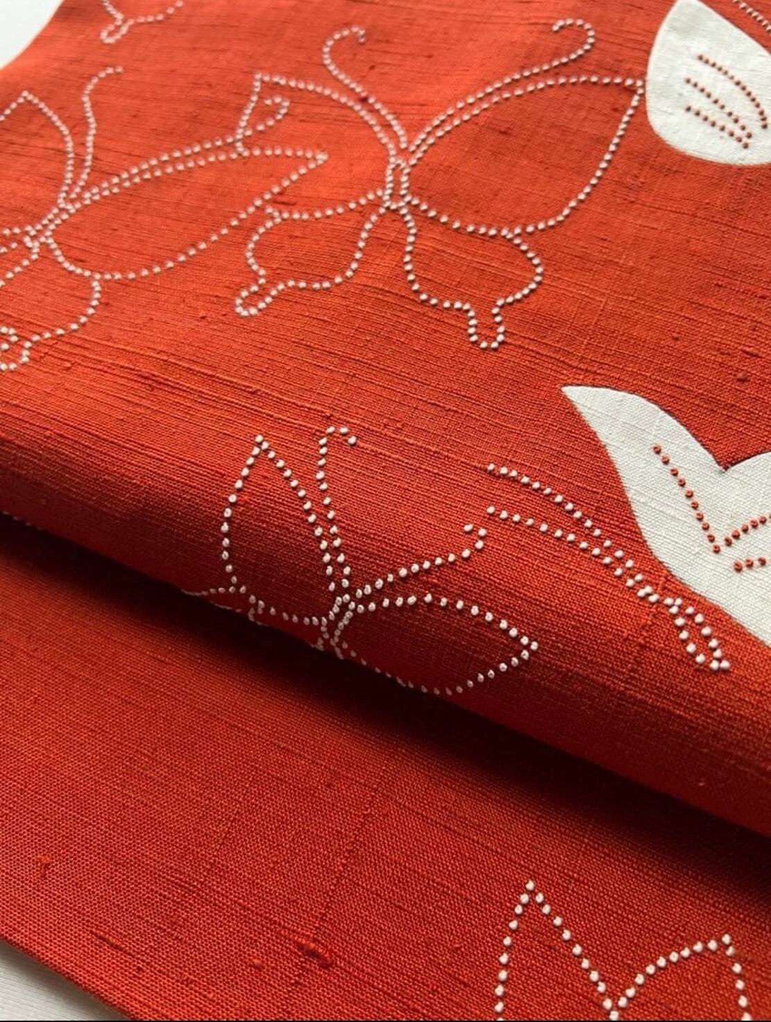 蝶々の刺し子の刺繍で、可愛らしい雰囲気の帯です。
