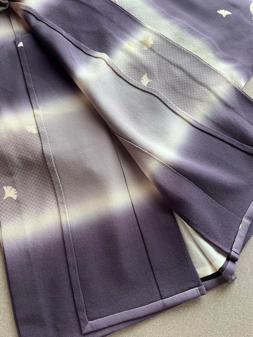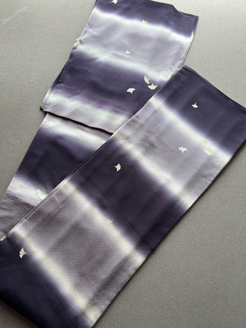 紫系の横段ぼかしに銀杏の柄です。