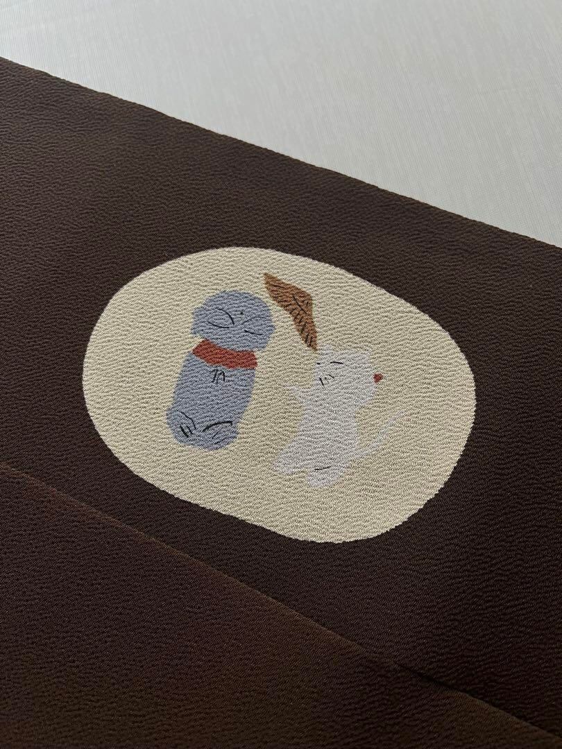 童謡の笠地蔵にねこちゃんが描かれているとても可愛い帯です。