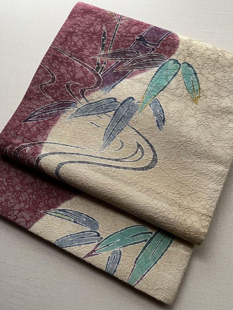 全通 袋帯 流水に竹笹模様 染