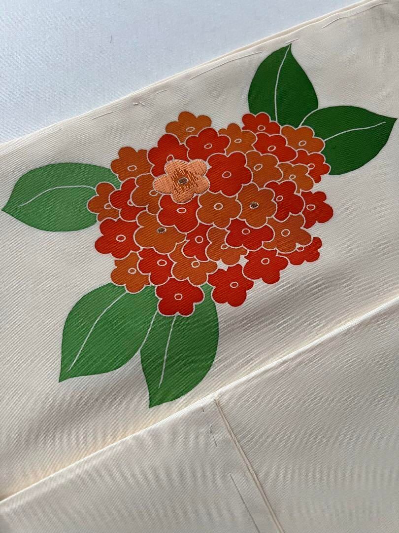 紫陽花部分に一部刺繍が施されており、立体感があるように見えます。