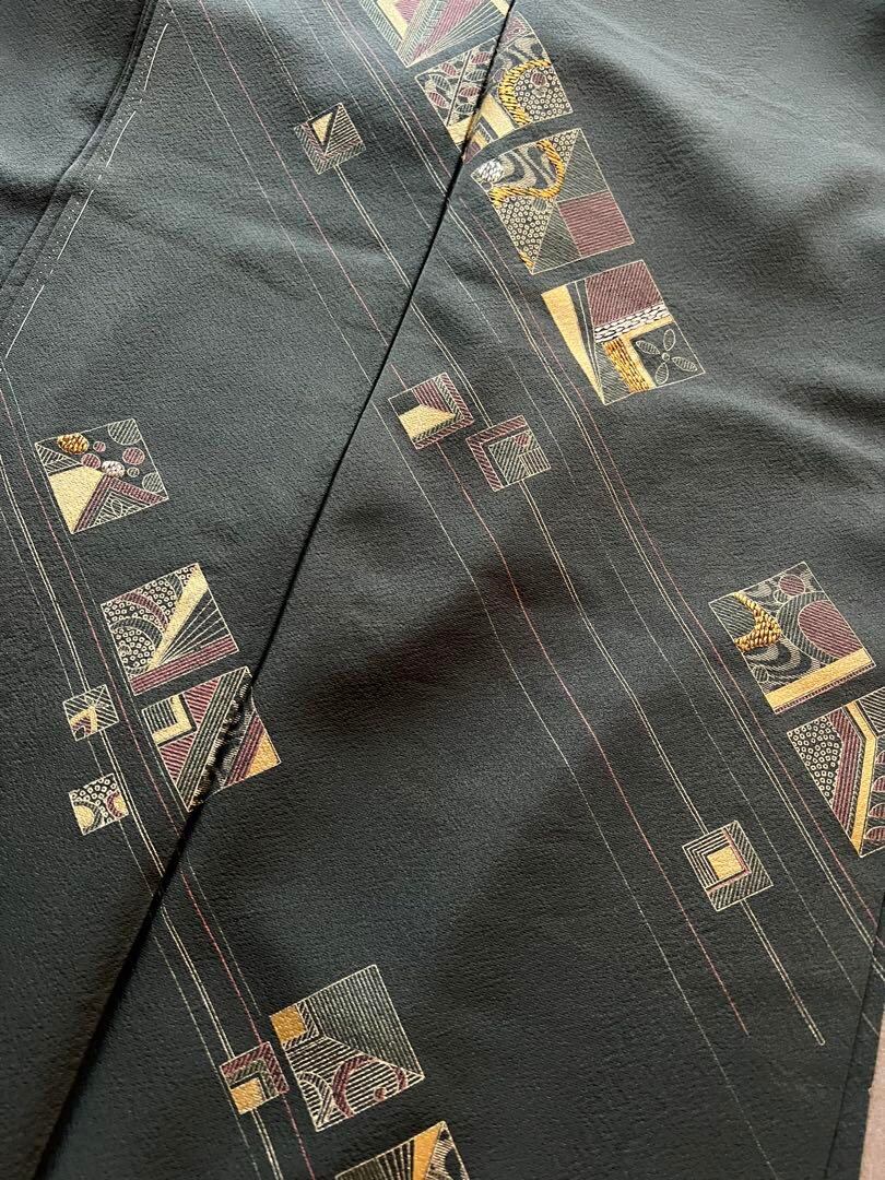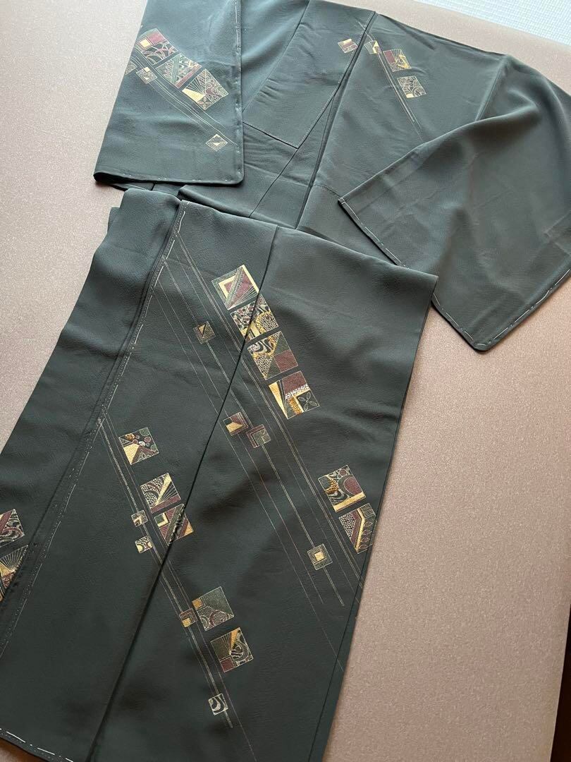 しつけ付き未使用 付下げ ダークグリーン 金彩