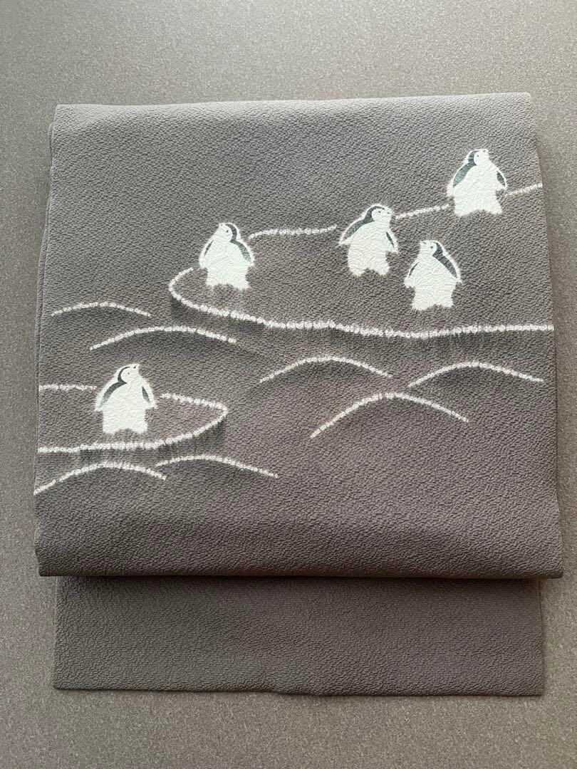 ペンギン柄がとても可愛らしく、染めの濃淡で流氷?を表現されていてとても凝った帯です。