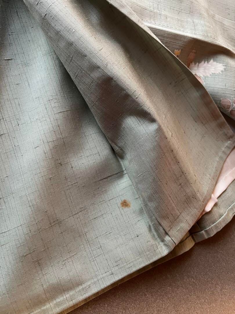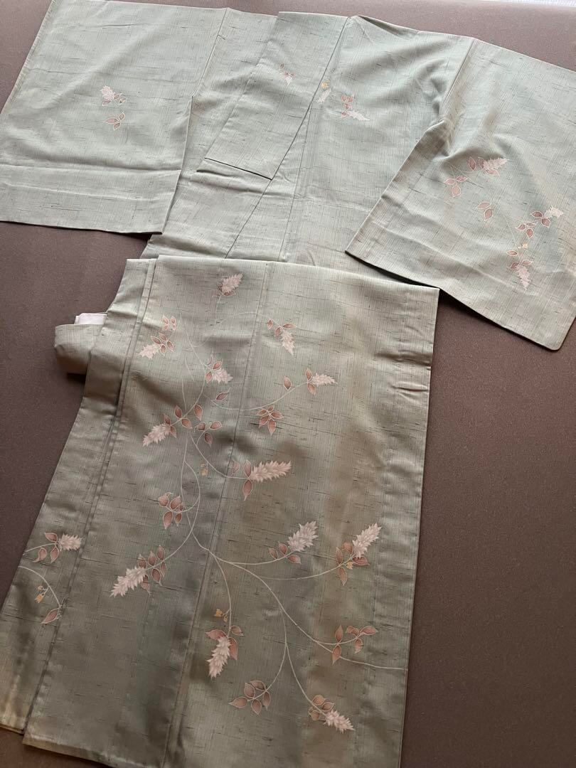 単衣 紬 付下げ ミントグリーン 花