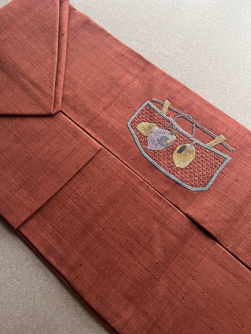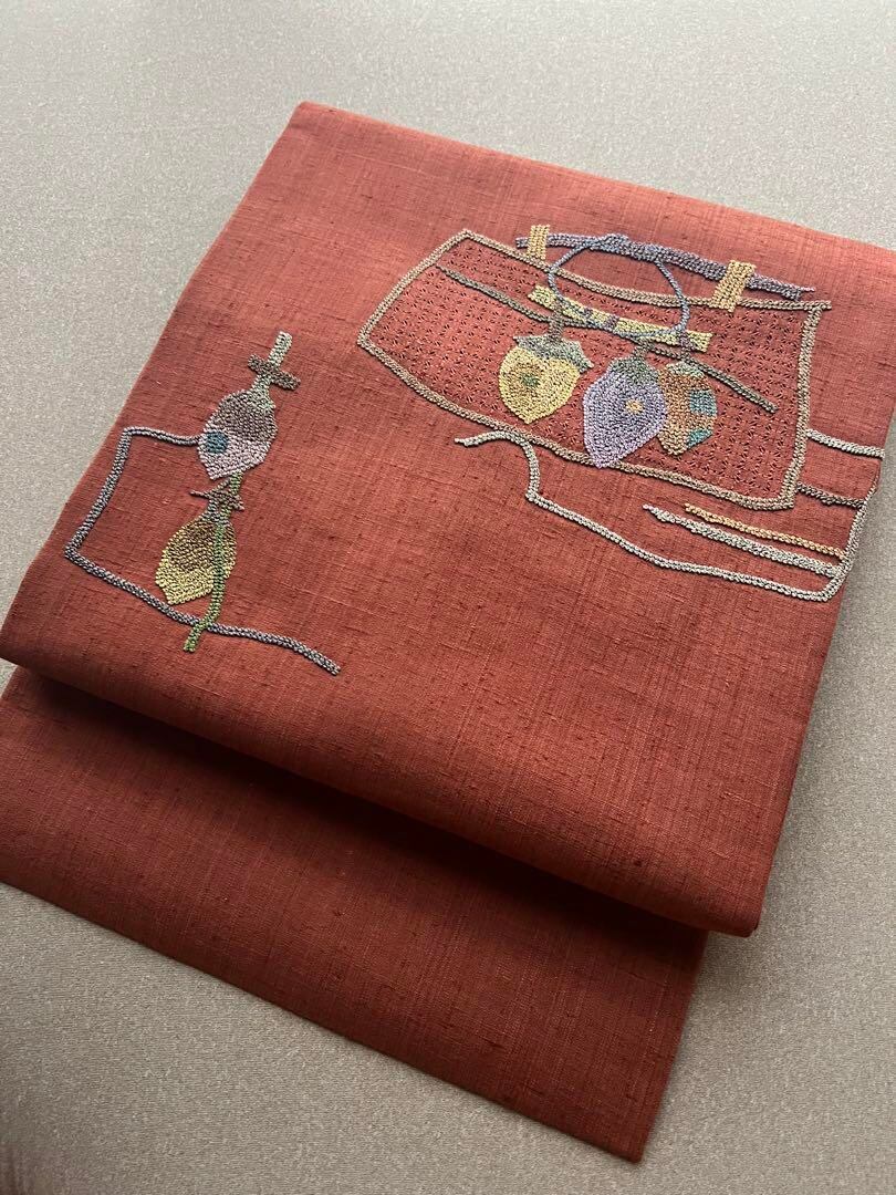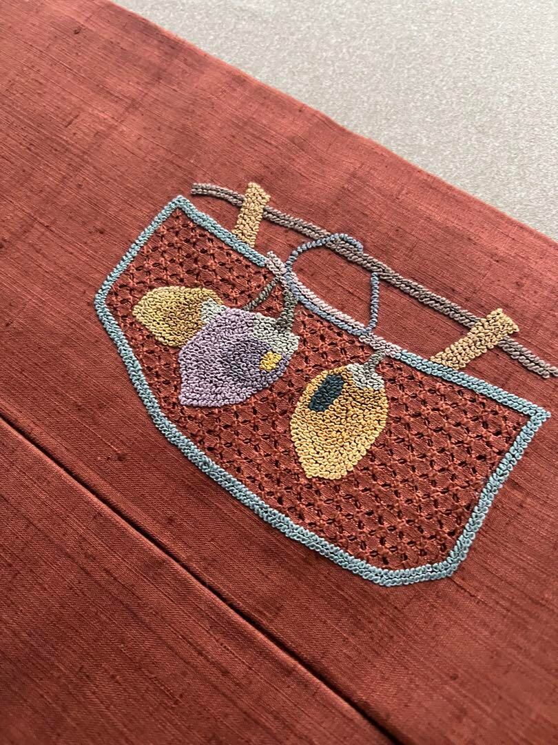 名古屋帯 紬 相良刺繍 諏訪