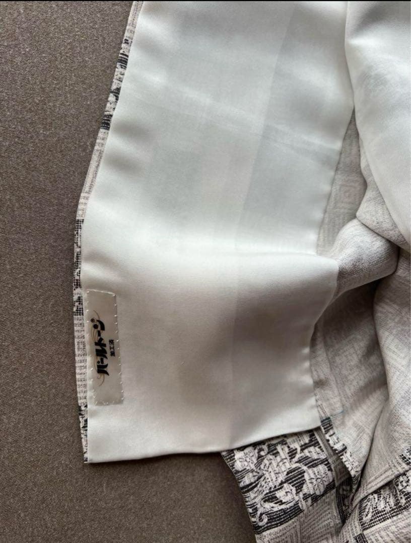 単衣 正絹 市松 花鳥模様 パールトーン