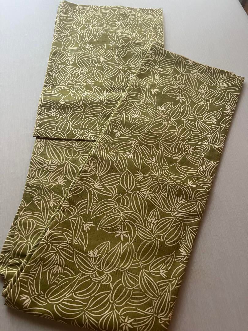 着物 紬 袷 リーフ 黄緑
