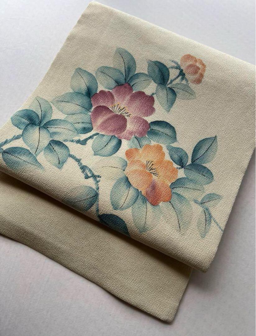 名古屋帯 縮緬 作家もの 花 長尺