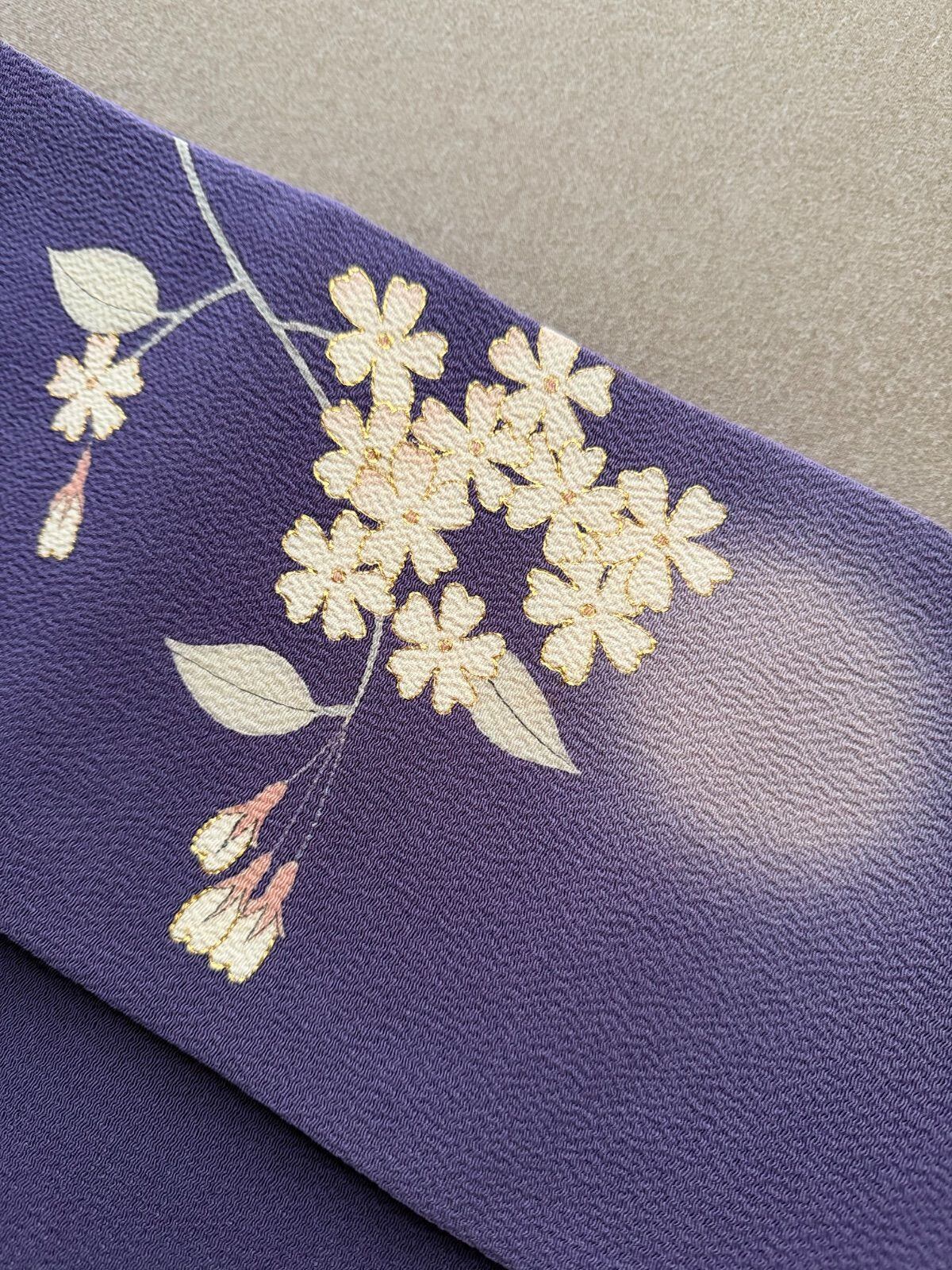 桜の花のようにも見えますが、抽象的なお花にも見えますので、袷のシーズンでしたら気兼ねなく着用頂けると思います。
