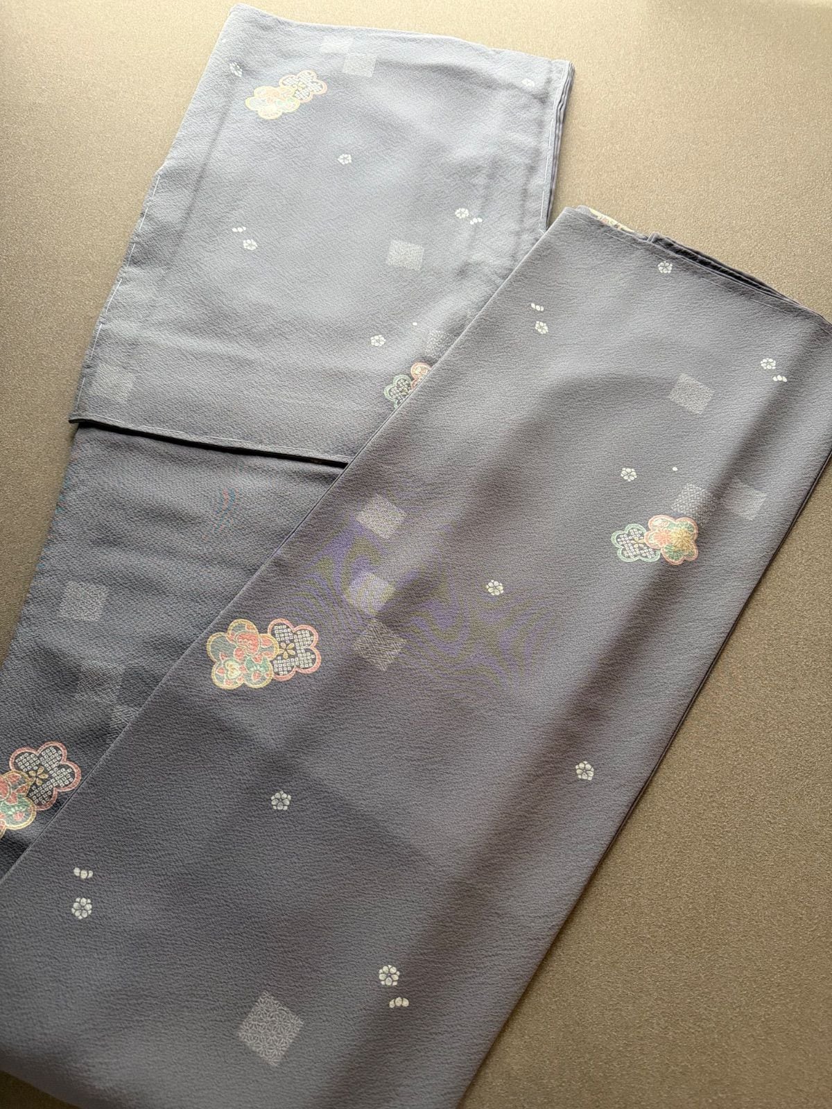 未使用 着物 袷 飛び柄小紋 グレー 花