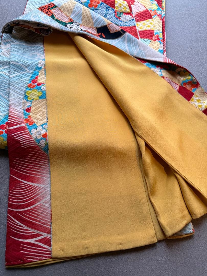 鮮やかな色合いが素敵なアンティーク着物です。