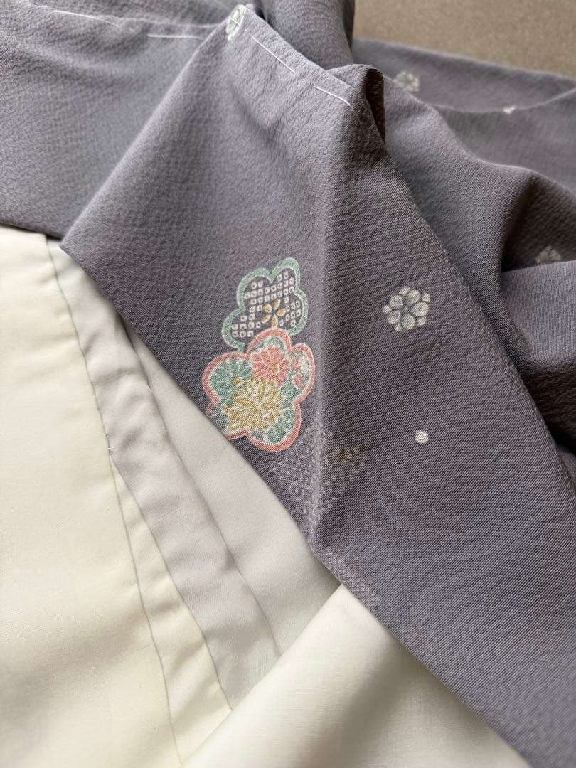 しつけ付き未使用 飛び柄小紋 袷 グレーパープル