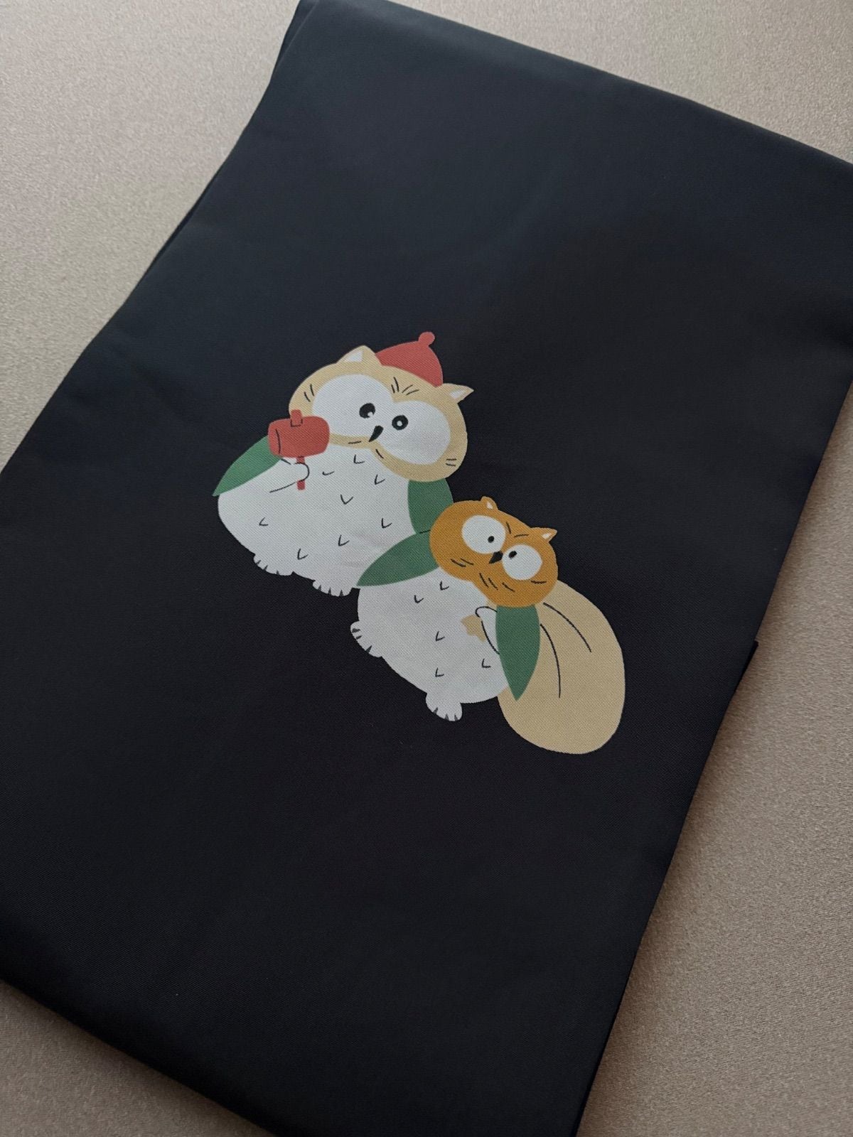 黒地に可愛い(恐らく?)フクロウの柄です。