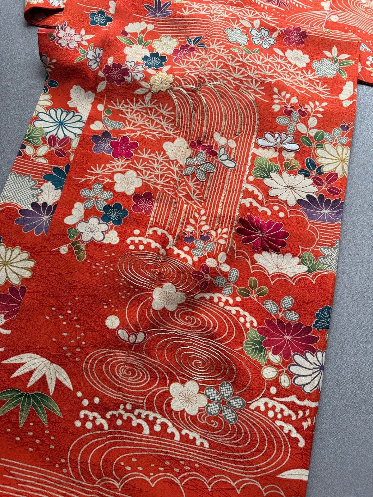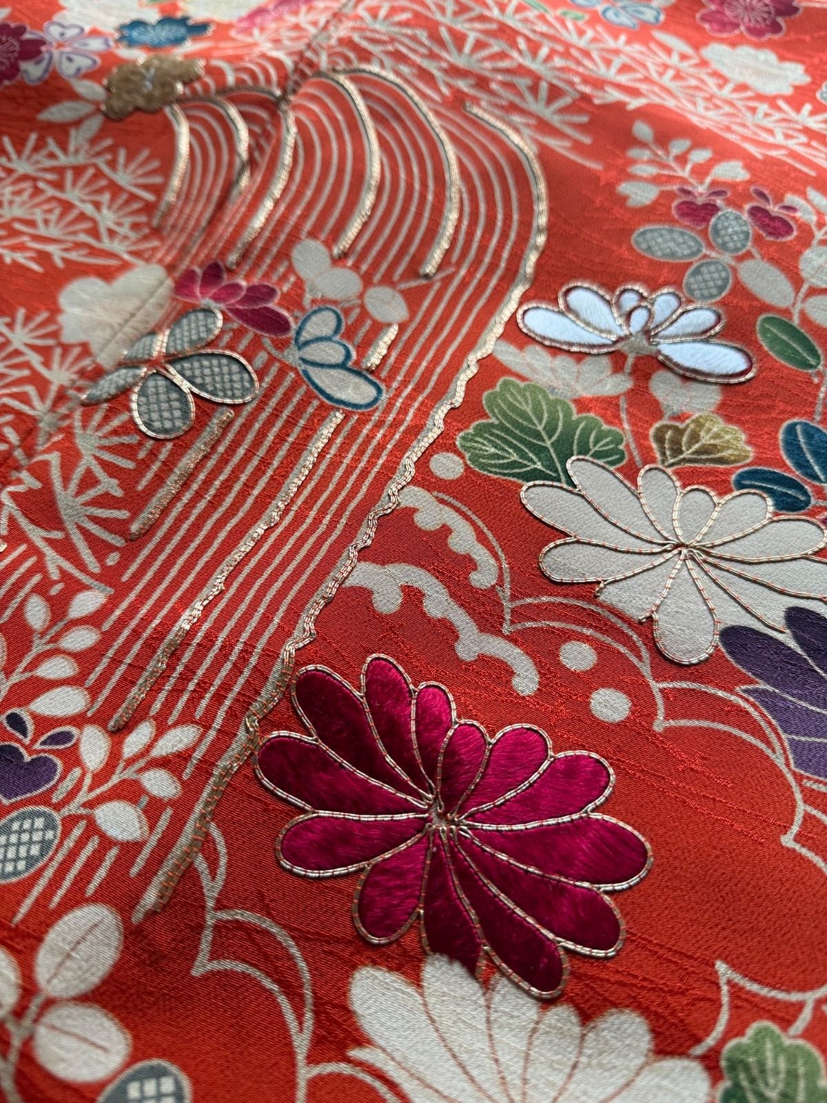 御所解紋様で昔の小袖のような古典的な柄で、