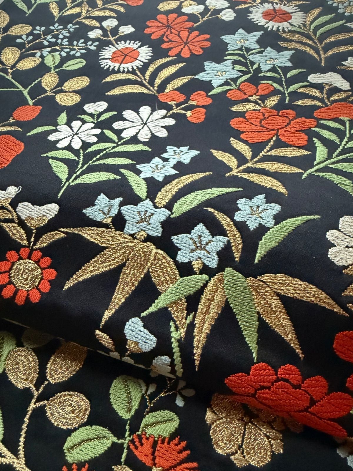 セミアンティーク程度のもので、黒地に花尽くしの柄です。
