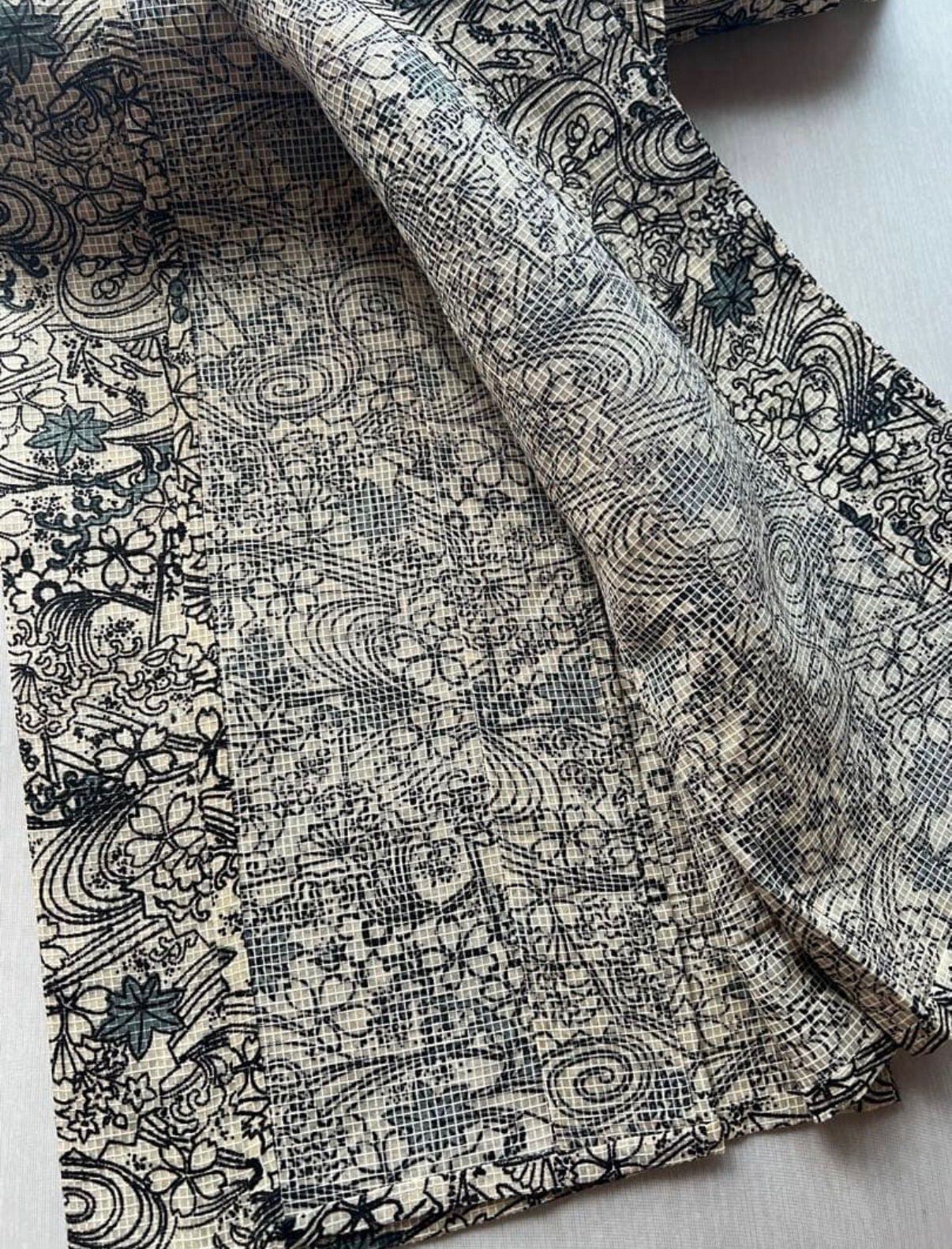 夏着物 絹紅梅 竜田川模様 夏物 浴衣
