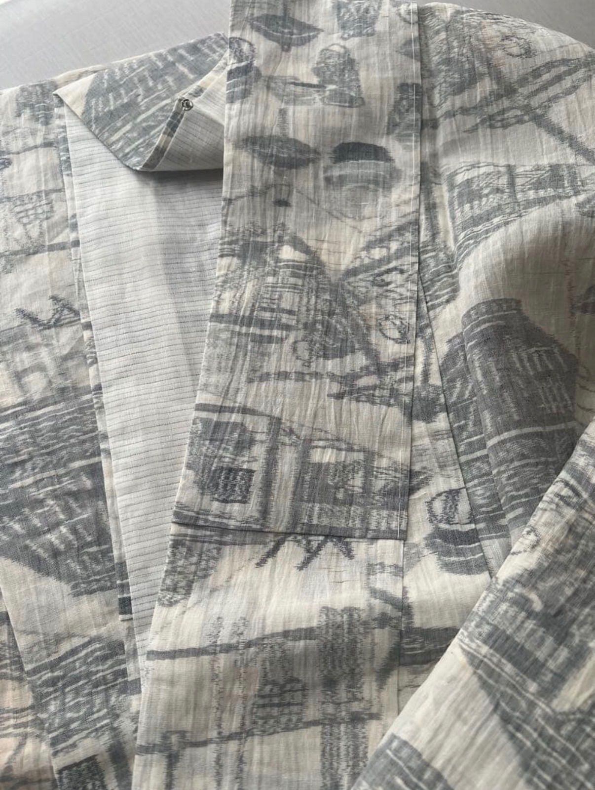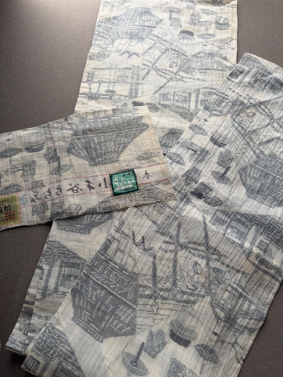 白地に風景模様の小千谷ちぢみです。