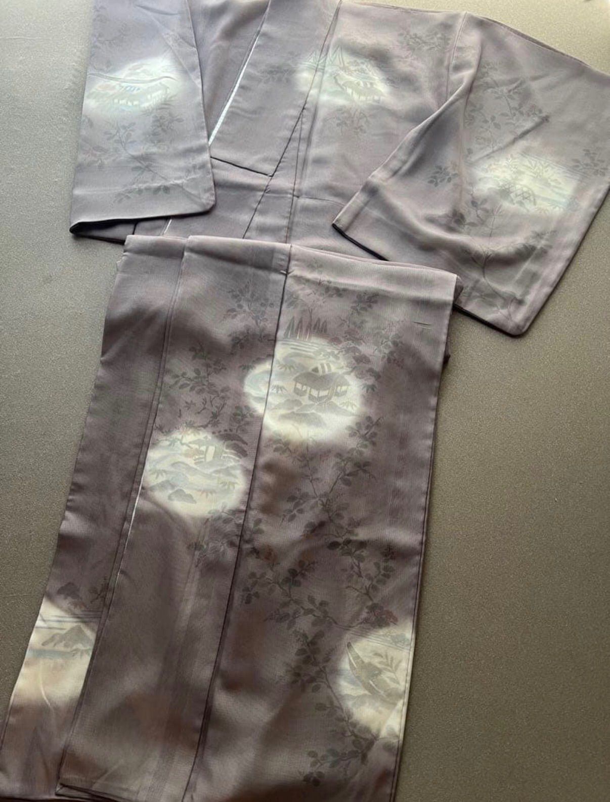 単衣 紗袷 二重紗 夏物 紫 ぼかし