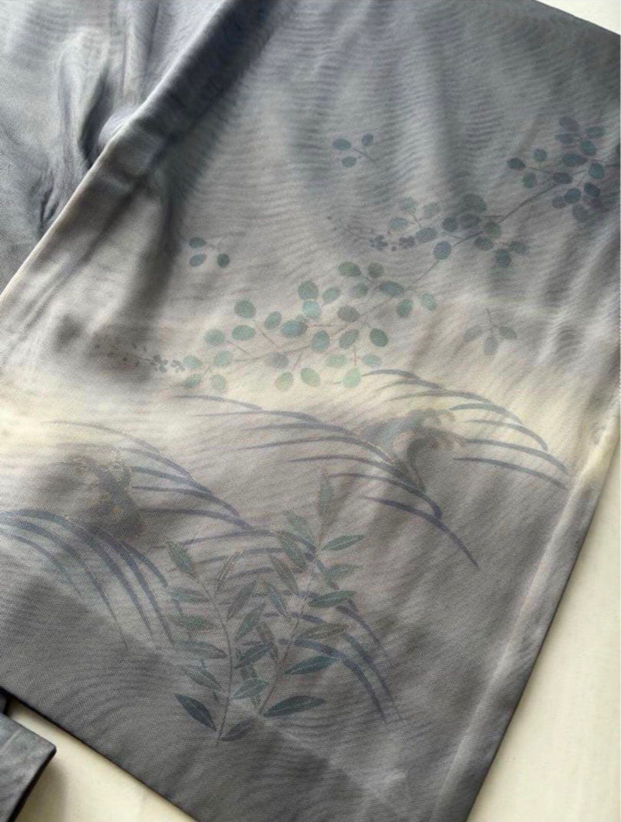 涼しげな流水に水車、そして草花の柄で暑さを感じる6.9月の着用にぴったりです。