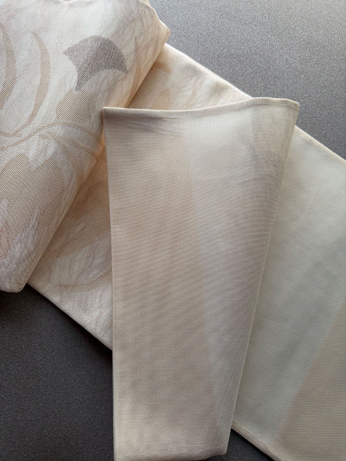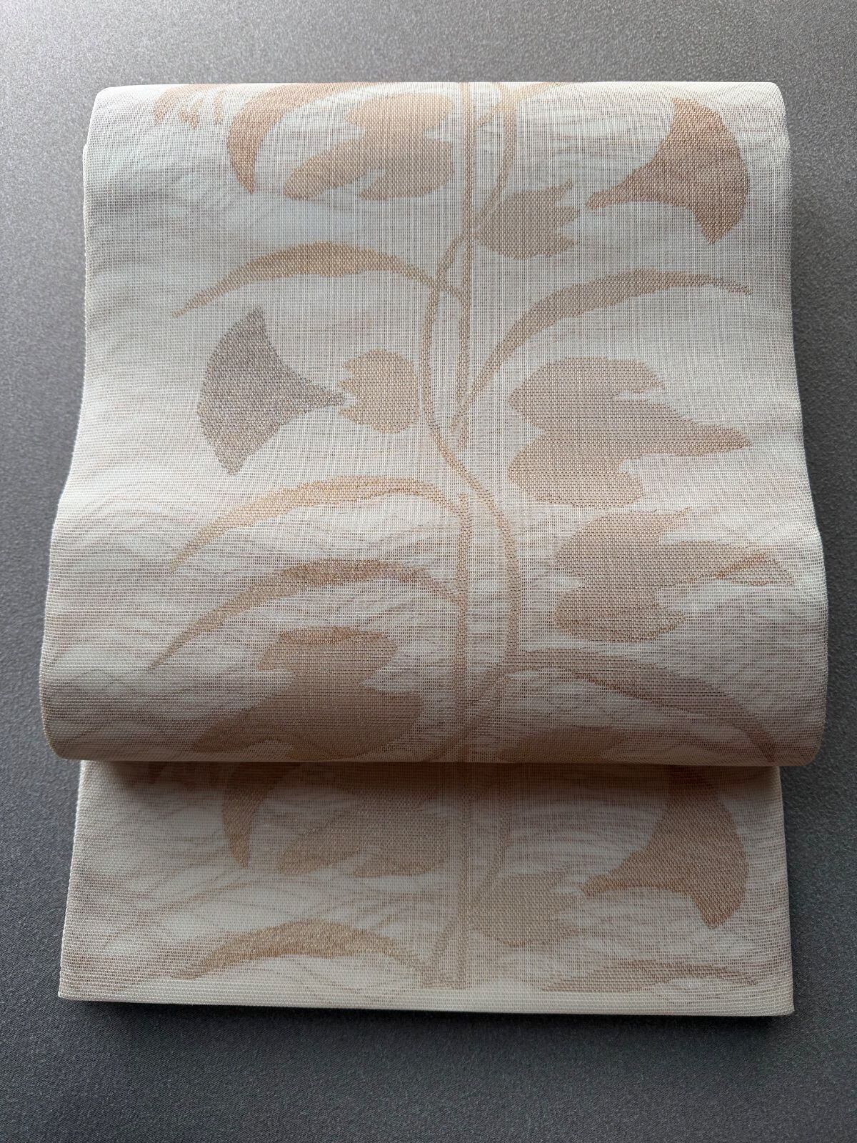 袋帯 夏帯 紗 全通 白地 金 夏物